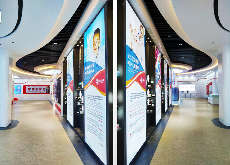 新展厅在公司大厅一楼,整体布局精致有序,采用全视角科技化设计,用线条表现优雅,引导参观,主题突出,内涵丰富。